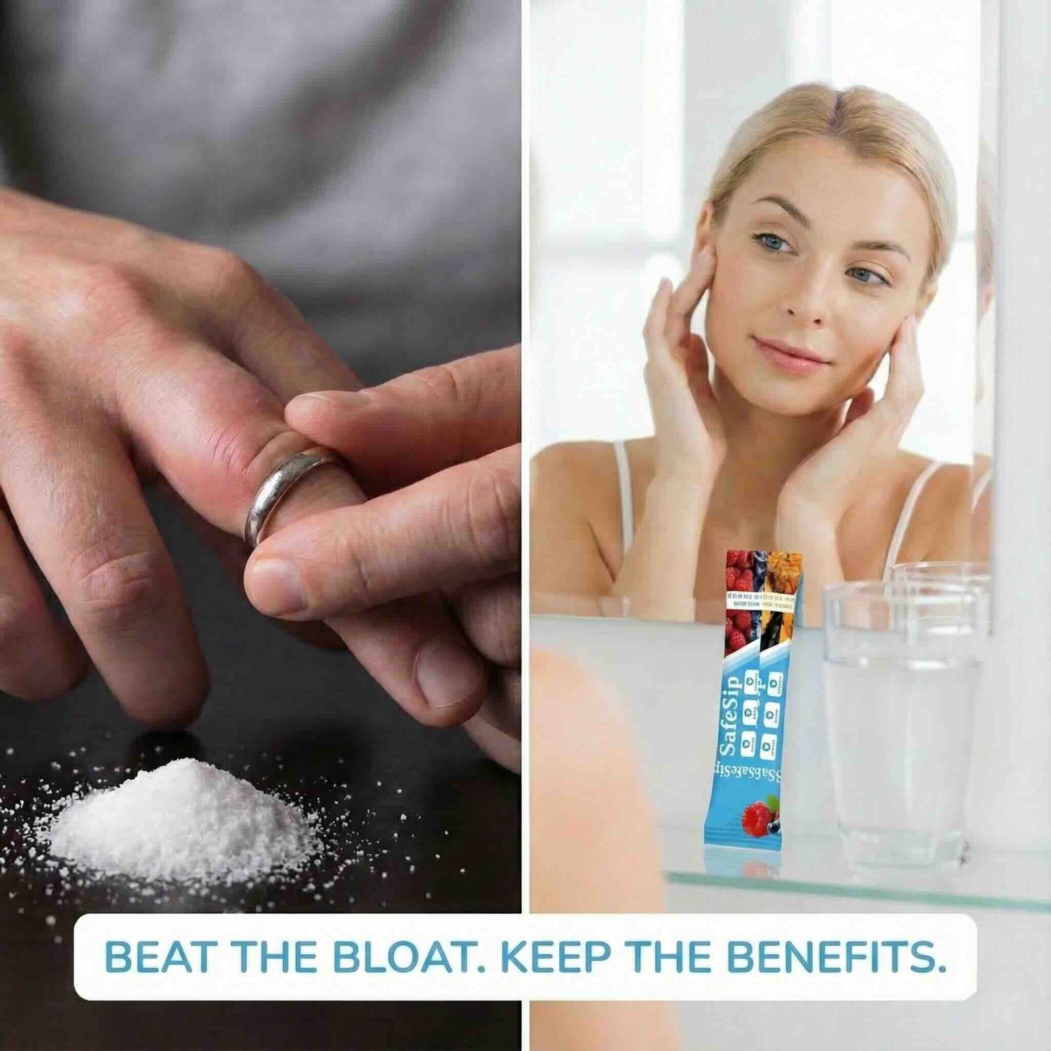 We designed SafeSip specifically to minimize bloating. While sodium does cause some water retention (that's literally how it helps with blood volume), we've balanced it with 250mg potassium and 100mg magnesium per serving to help your body regulate fluid distribution more effectively. Many customers report less facial puffiness compared to straight salt tablets or unbalanced electrolyte drinks. The key is consistent hydration—when you're properly hydrated daily, your body stops hoarding water defensively, which actually reduces chronic puffiness over time.