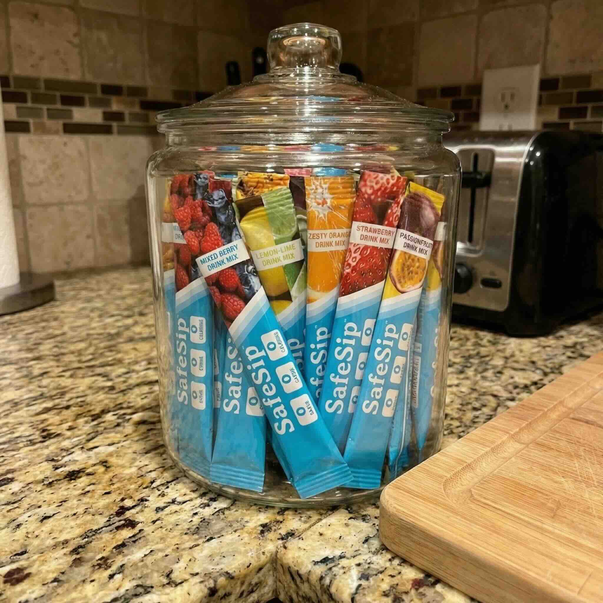 No—SafeSip sticks are shelf-stable and don't require refrigeration before or after mixing. That said, most people prefer it cold (it tastes better and helps with heat intolerance). You can mix it fresh each time, or pre-mix a bottle in the morning and sip throughout the day. Just store any unused powder in a cool, dry place. The individual stick format is designed for portability—toss a few in your purse, car, or desk drawer so you're never caught without your safety net.